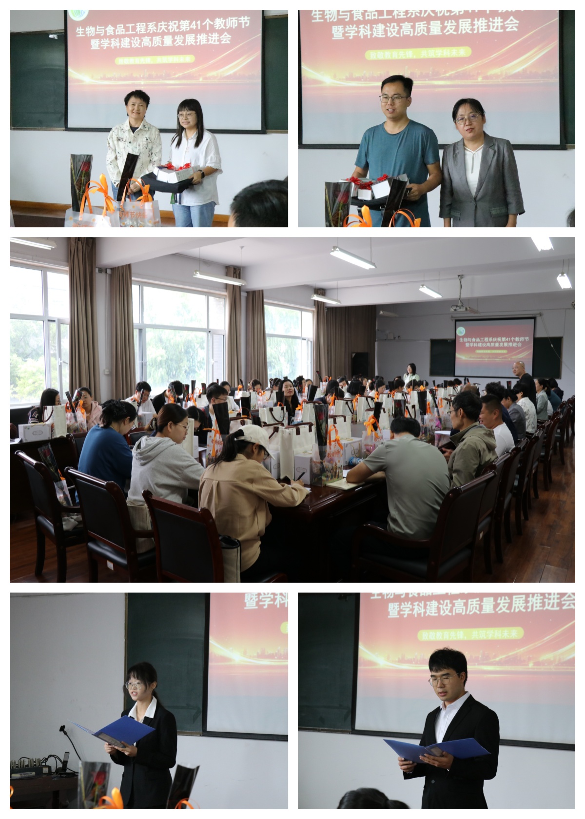 主任冯彩平向受到表彰的优秀教师表示热烈祝贺,向全体教职员工致以节日的祝福和崇高的敬意。她说,近年来,系部始终坚持把教师队伍建设放在重要位置,重视教师、关心教师,尊师重教氛围日益浓厚。广大教师和教育工作者躬耕教坛、静待花开,兢兢业业、无私奉献,用行动诠释了教育家精神,为系部事业发展作出了重要贡献,希望全体教职员工以先进为榜样,努力争当先进、赶超先进,在工作中做出更大成绩,为学校高质量发展添砖加瓦。并表示系部也会时刻关注青年教师合理诉求,搭好教师成长发展平台。