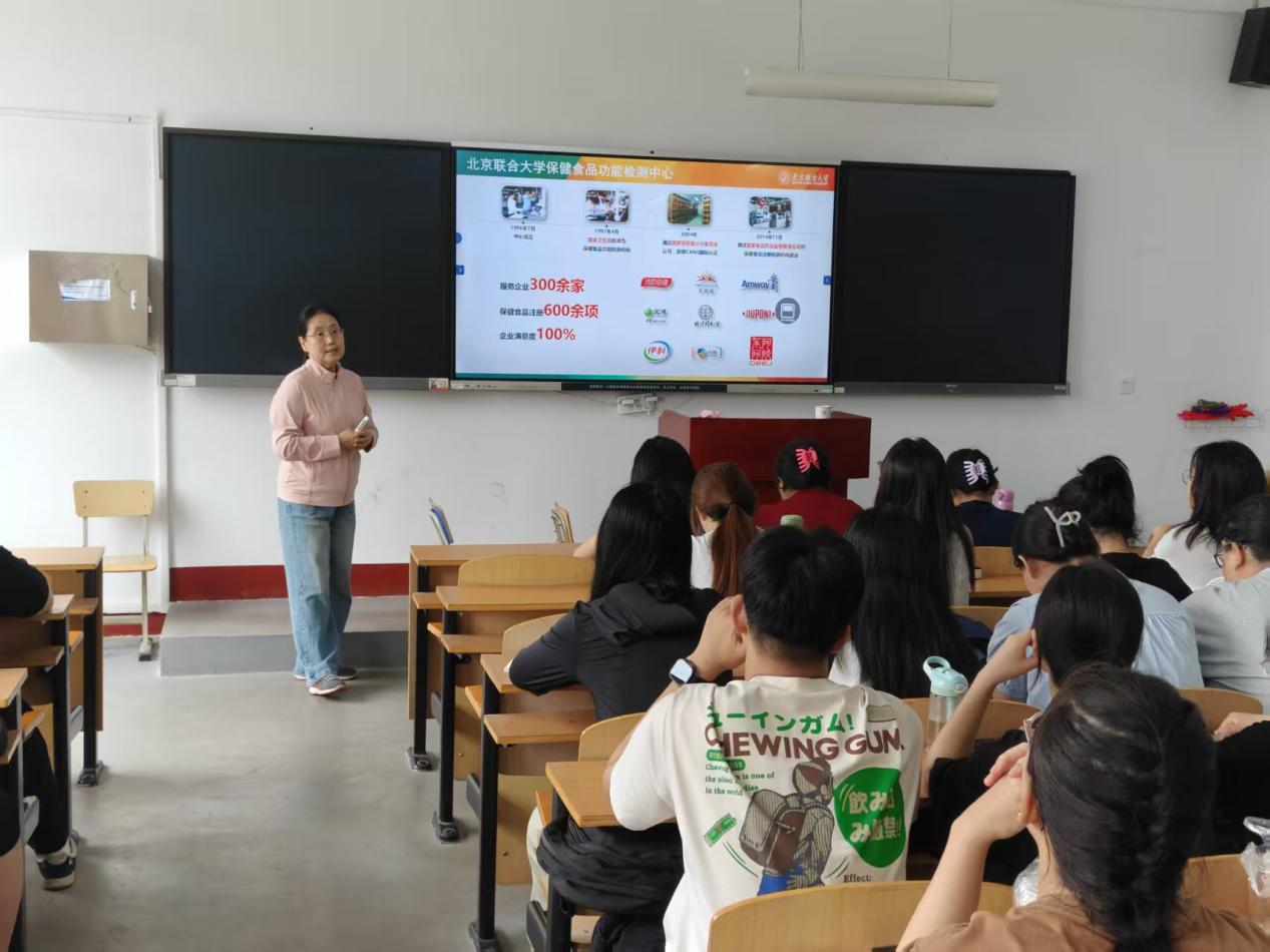 魏涛教授首先立足学科前沿与发展全局,对北京联合大学生物化学工程学院的研究生教育平台进行了全景式介绍。她结合生动实例,重点阐述了北京联合大学生物化学工程学院在食品科学基础研究、生物工程应用技术开发以及食品安全快速检测等方向形成的特色优势与雄厚科研积淀。魏教授详细解读了研究生阶段的重点研究方向,展示了多个由本院教师主持的国家级、省部级科研项目及其取得的突破性进展,并分享了历届研究生在这些高水平平台上参与前沿课题研究、产出优质学术成果的成长故事。她强调,学院致力于为研究生提供“导师深度指导+前沿项目实践+学术环境浸润”三位一体的培养模式,助力每一位有志学子攀登科研高峰。